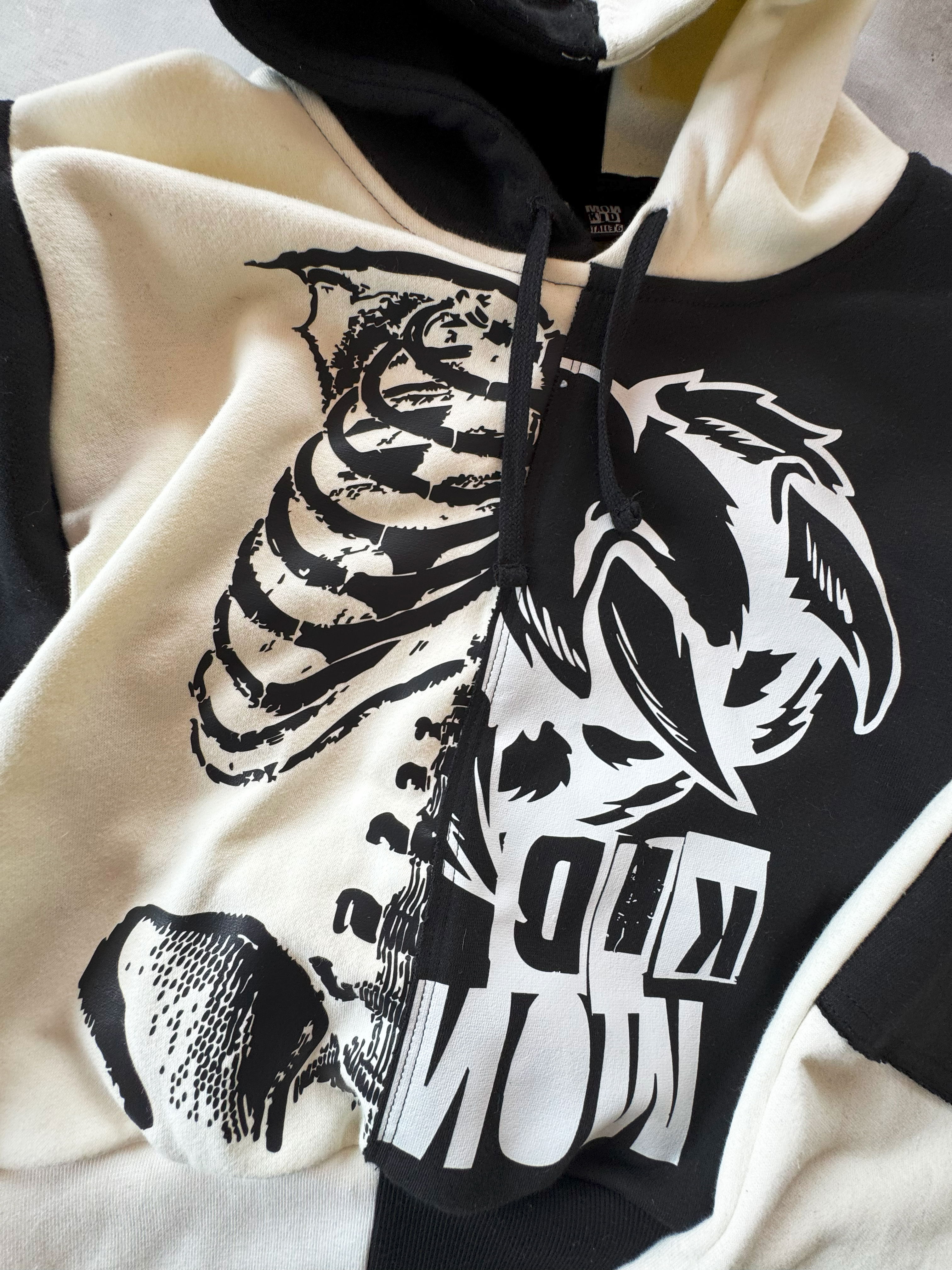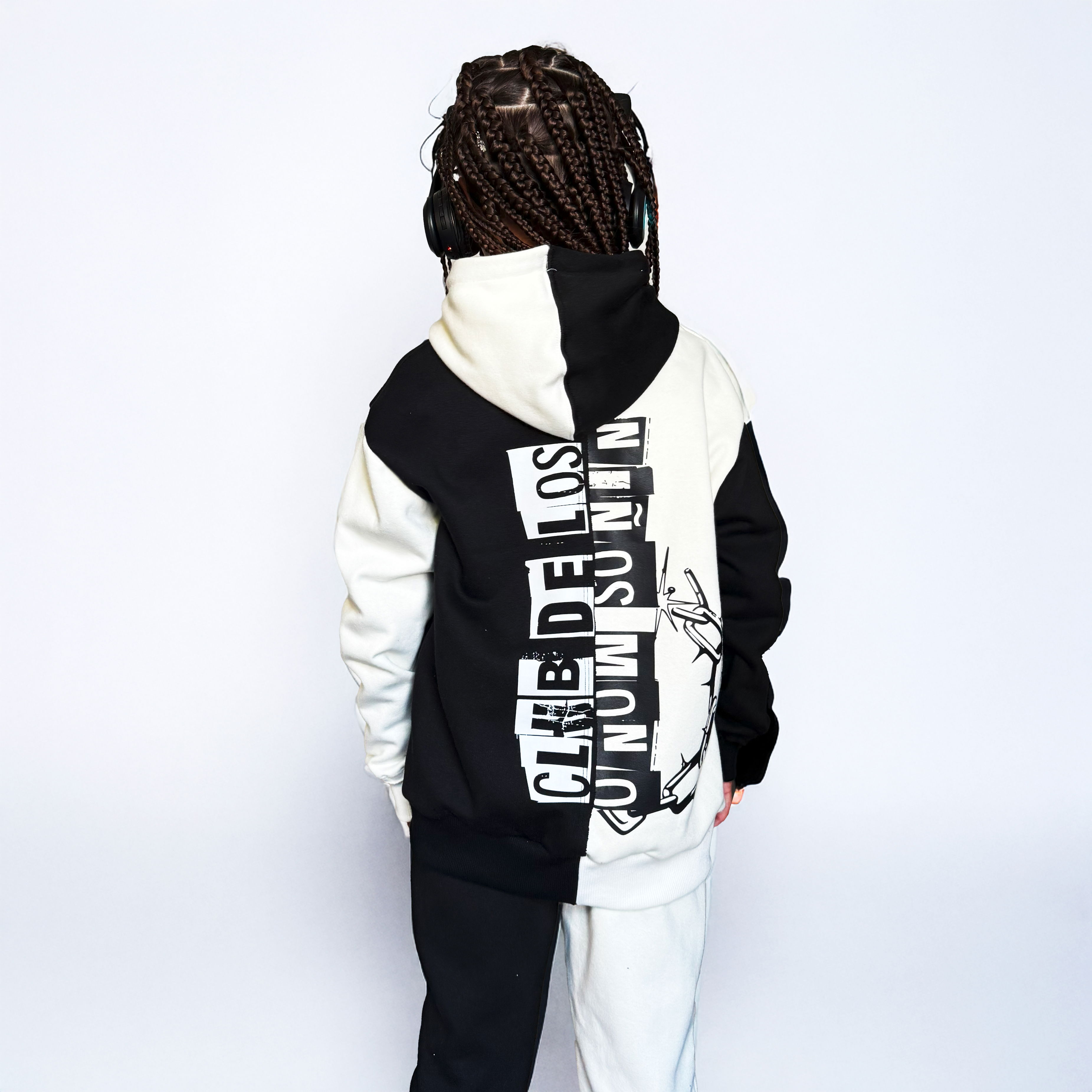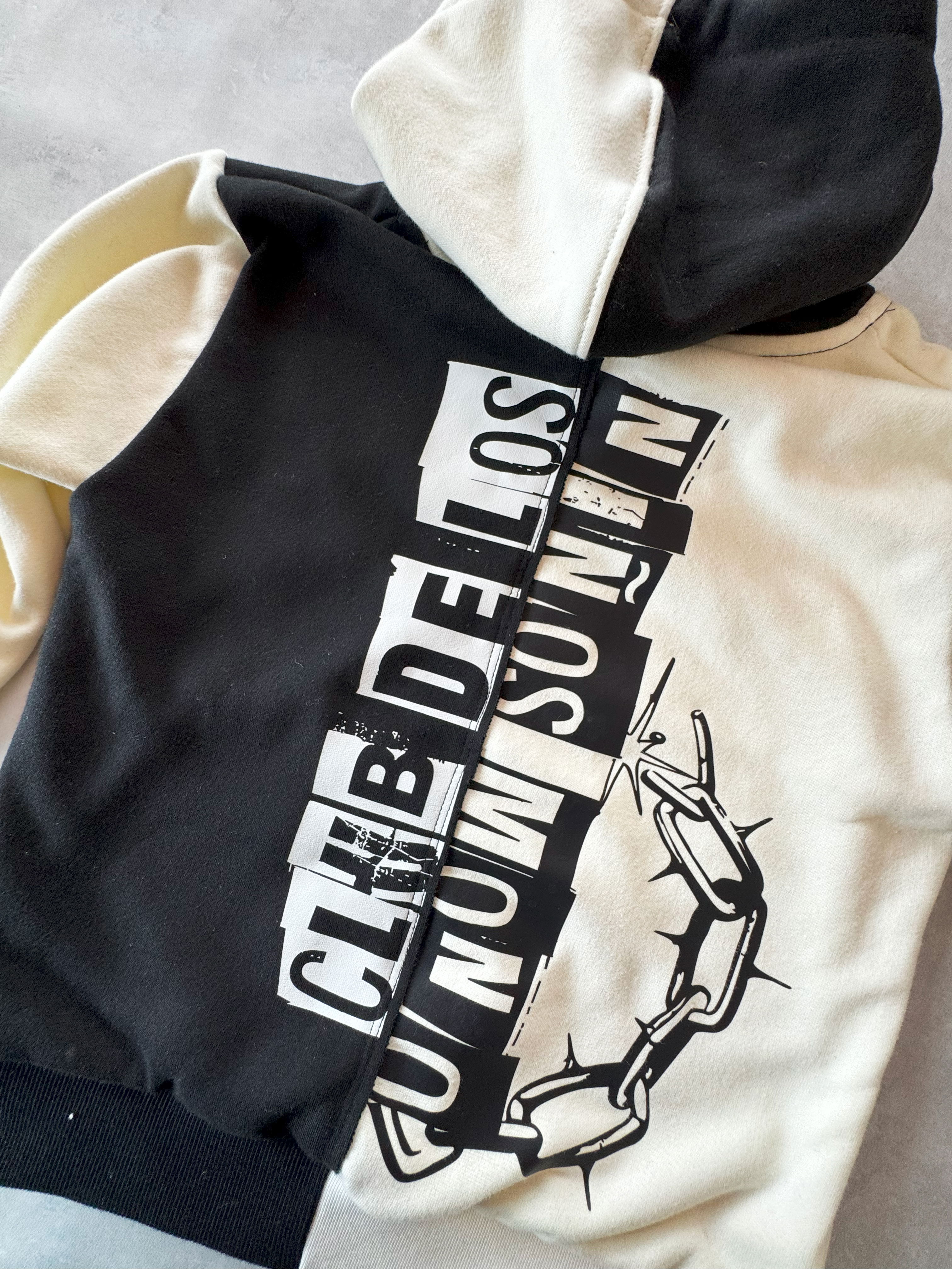 Costuras superpuestas, al corte y estampas a contratono para dar un look punk trash.