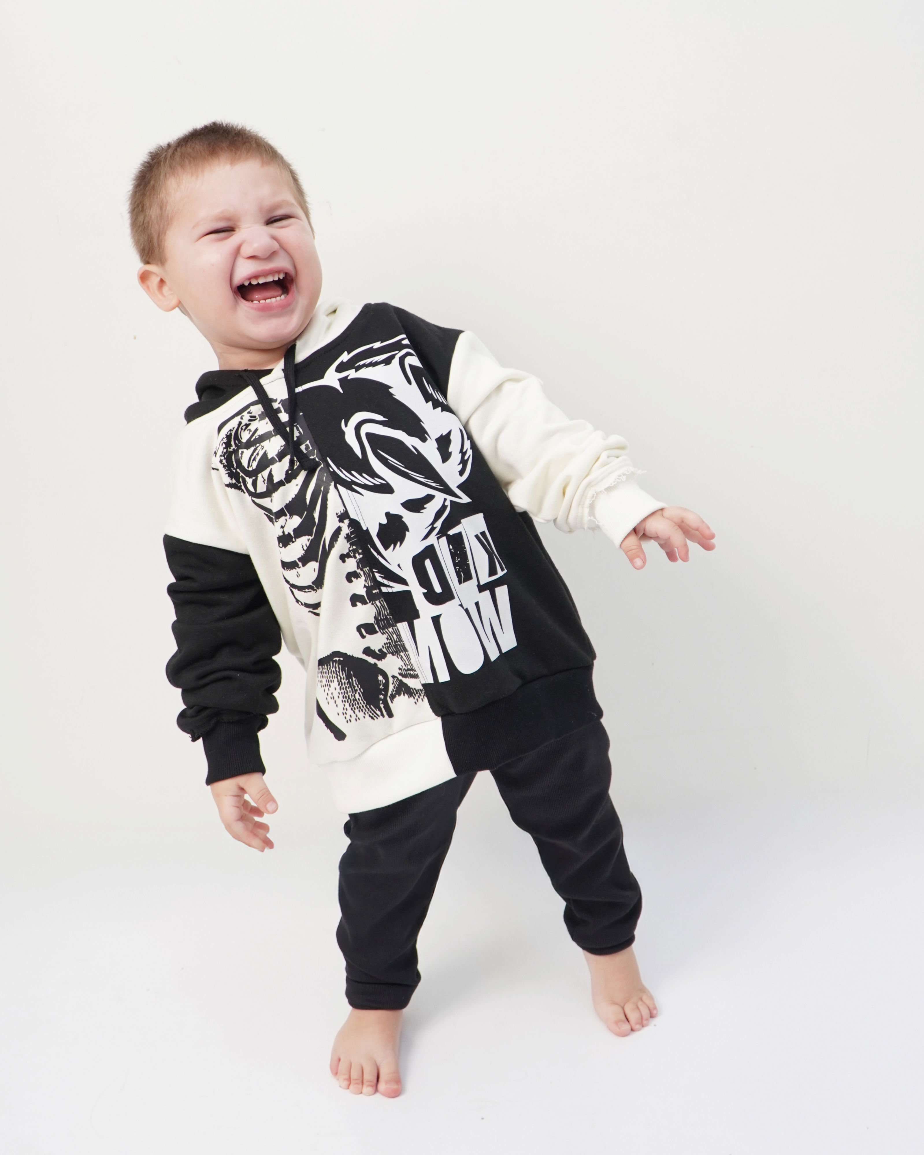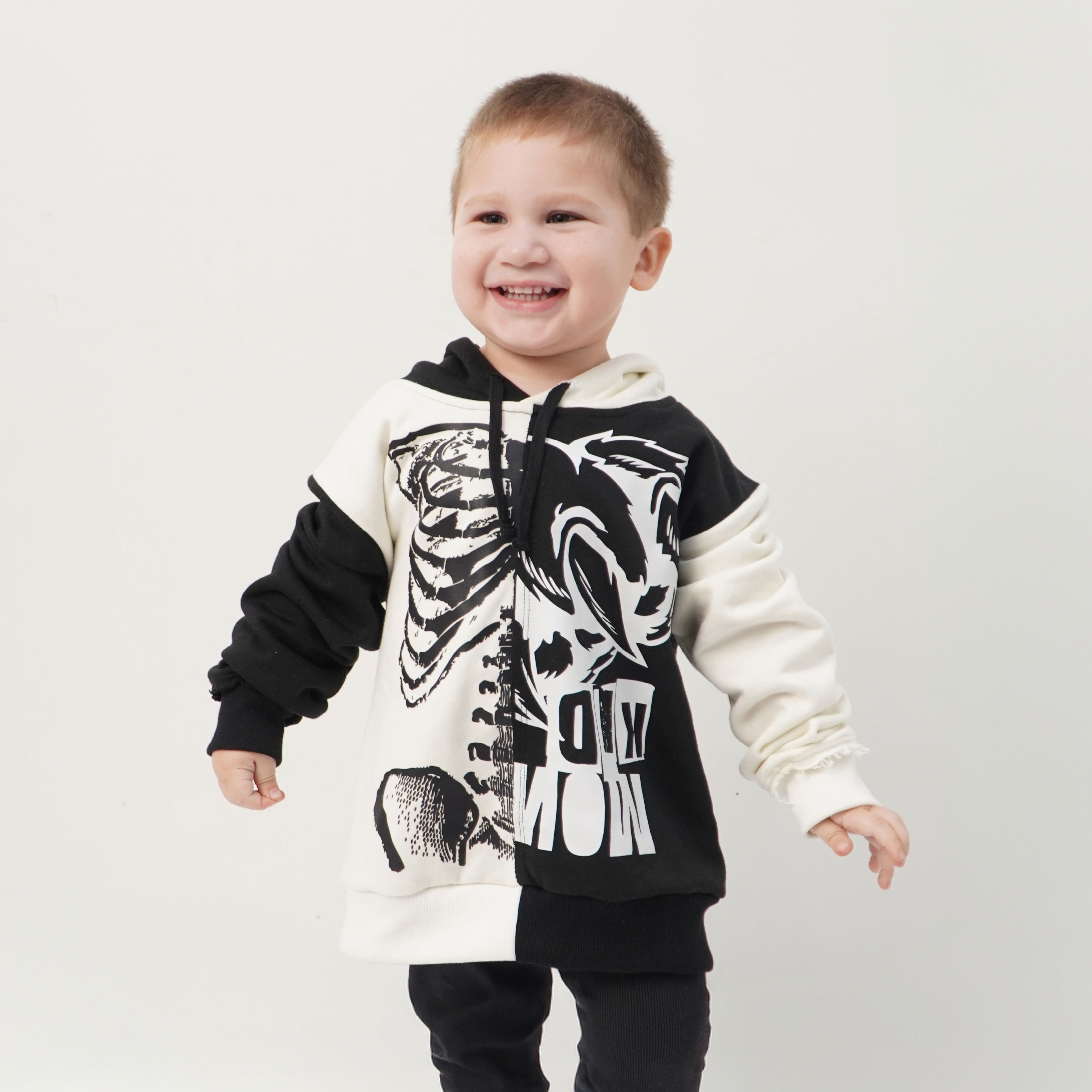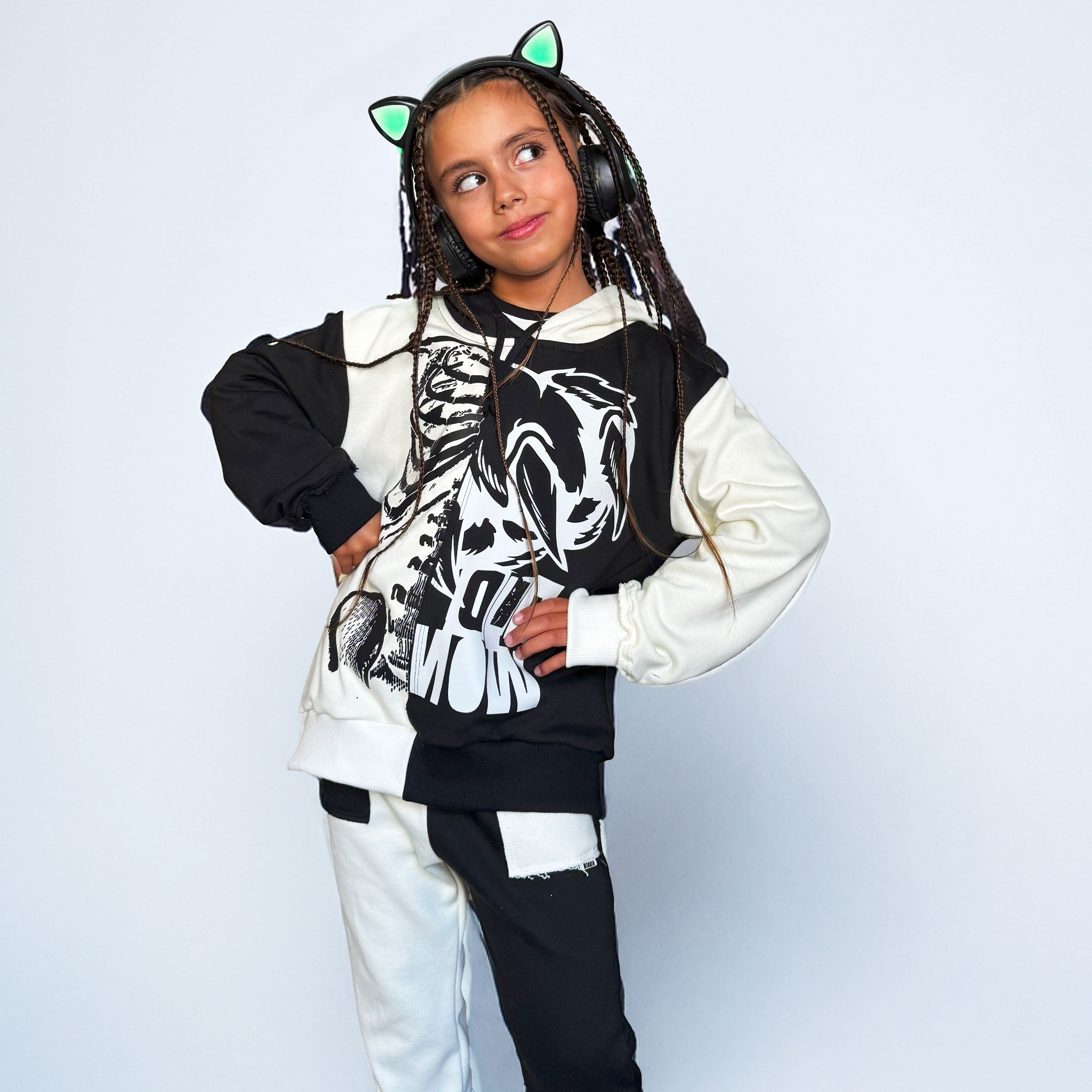 Costuras superpuestas, al corte y estampas a contratono para dar un look punk trash.
