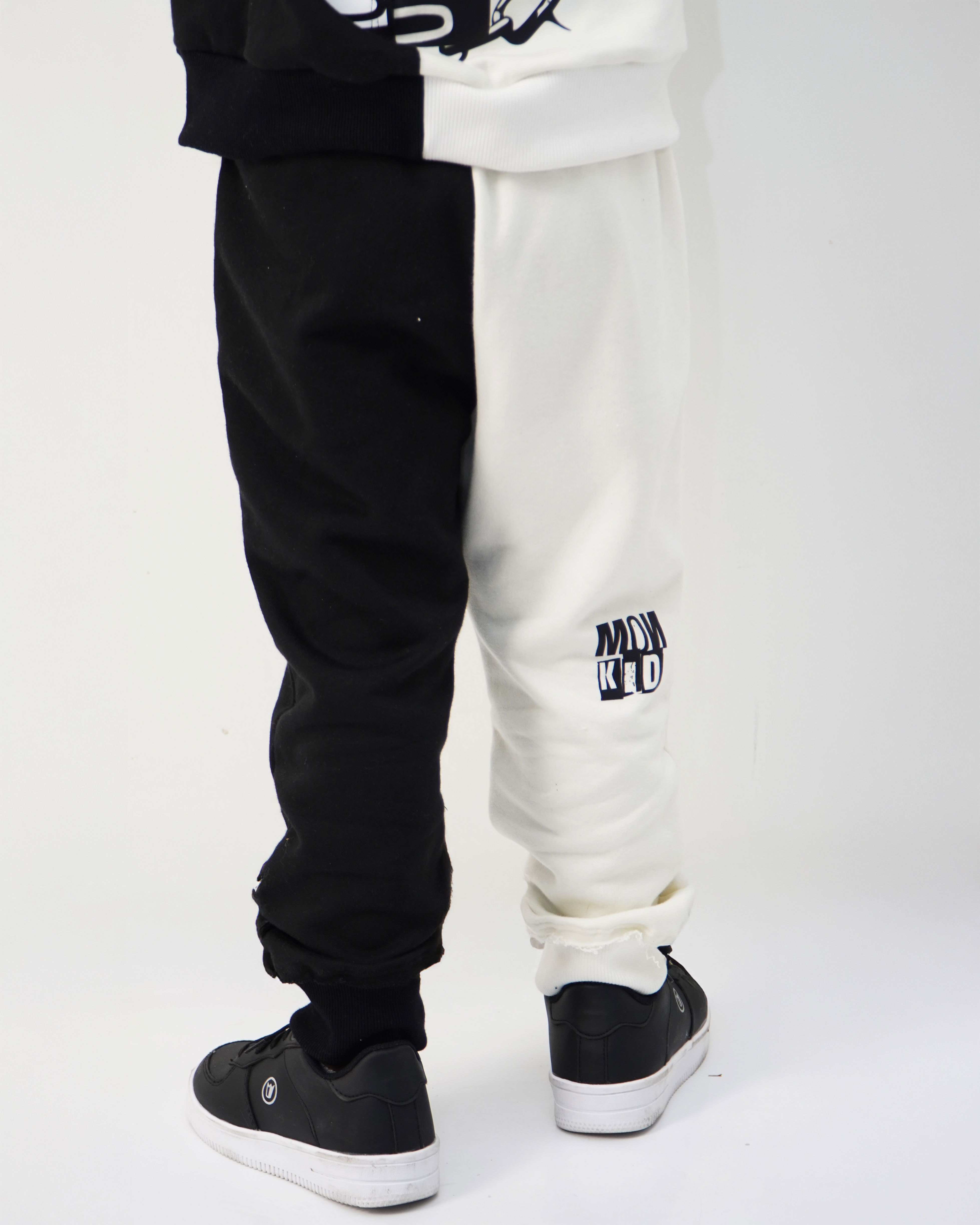 Costuras superpuestas y terminación al corte para dar un look punk trash.