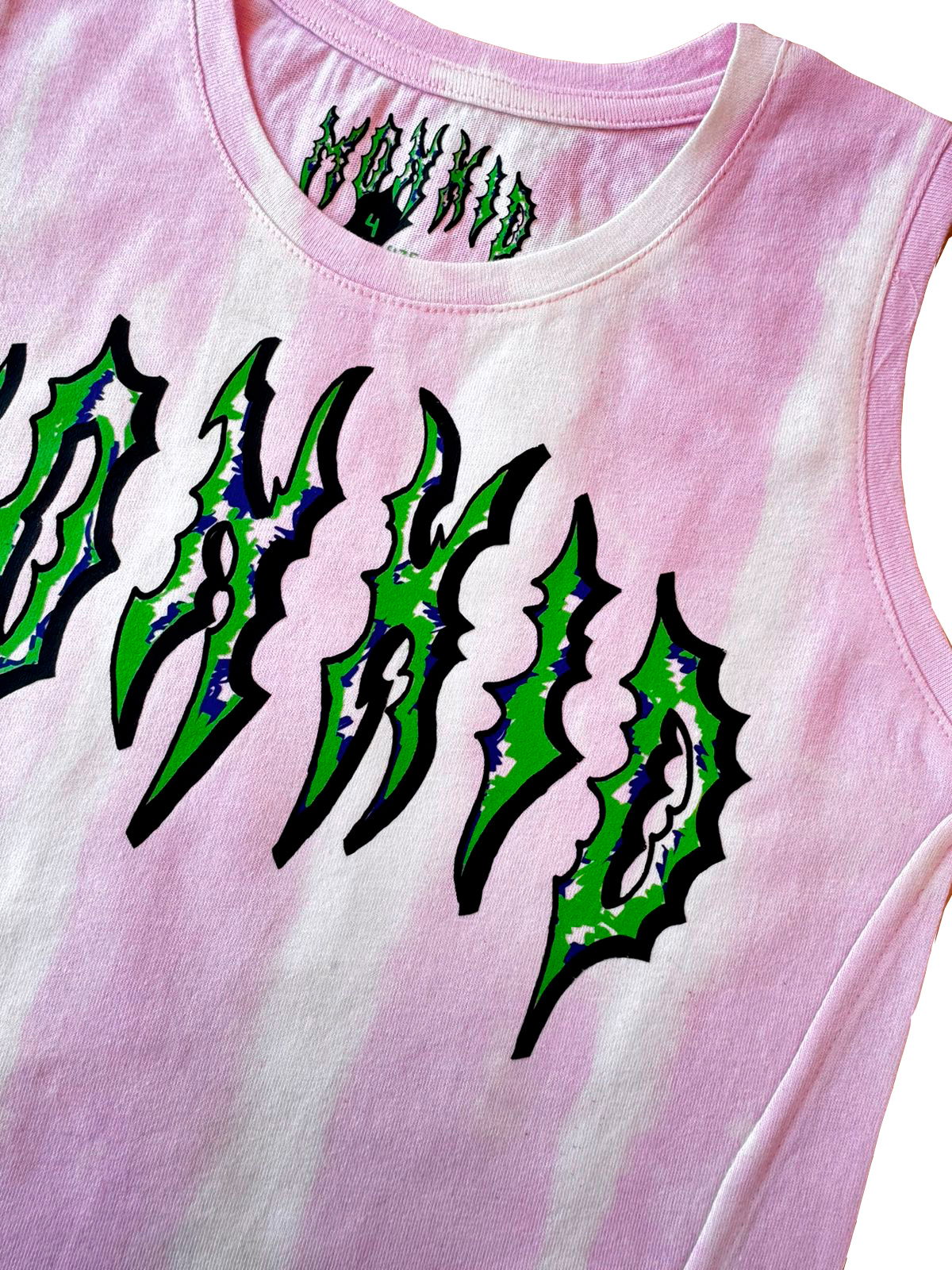 Desteñida a mano, estampada en el frente