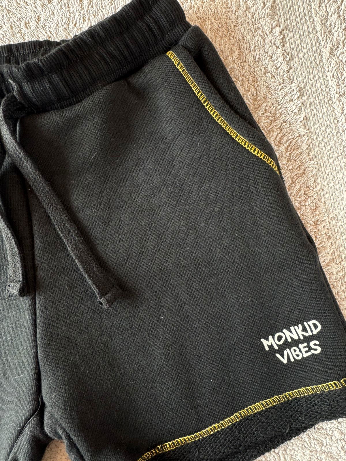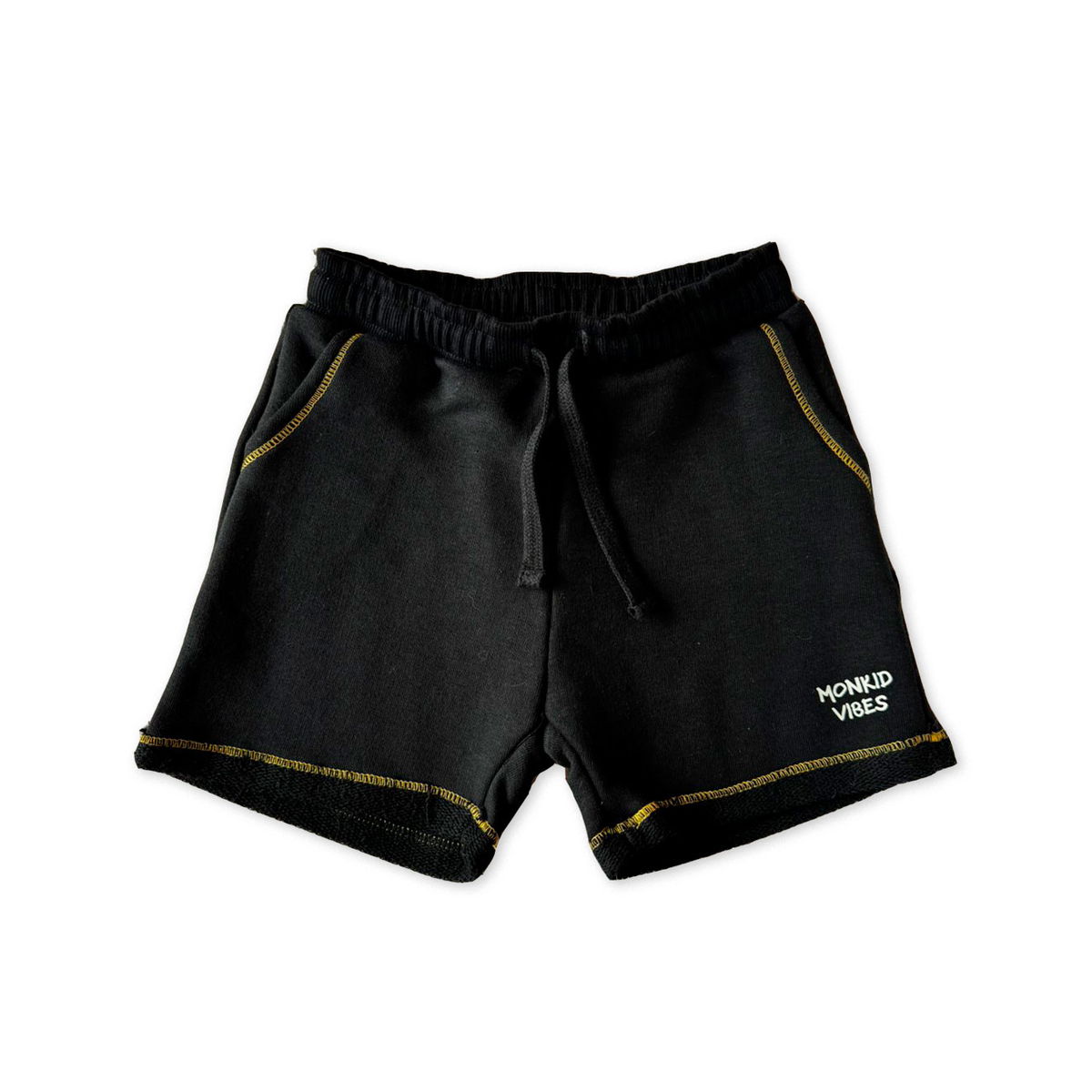 Short de rústico liso, con ruedo del revés, bordador a contratono.